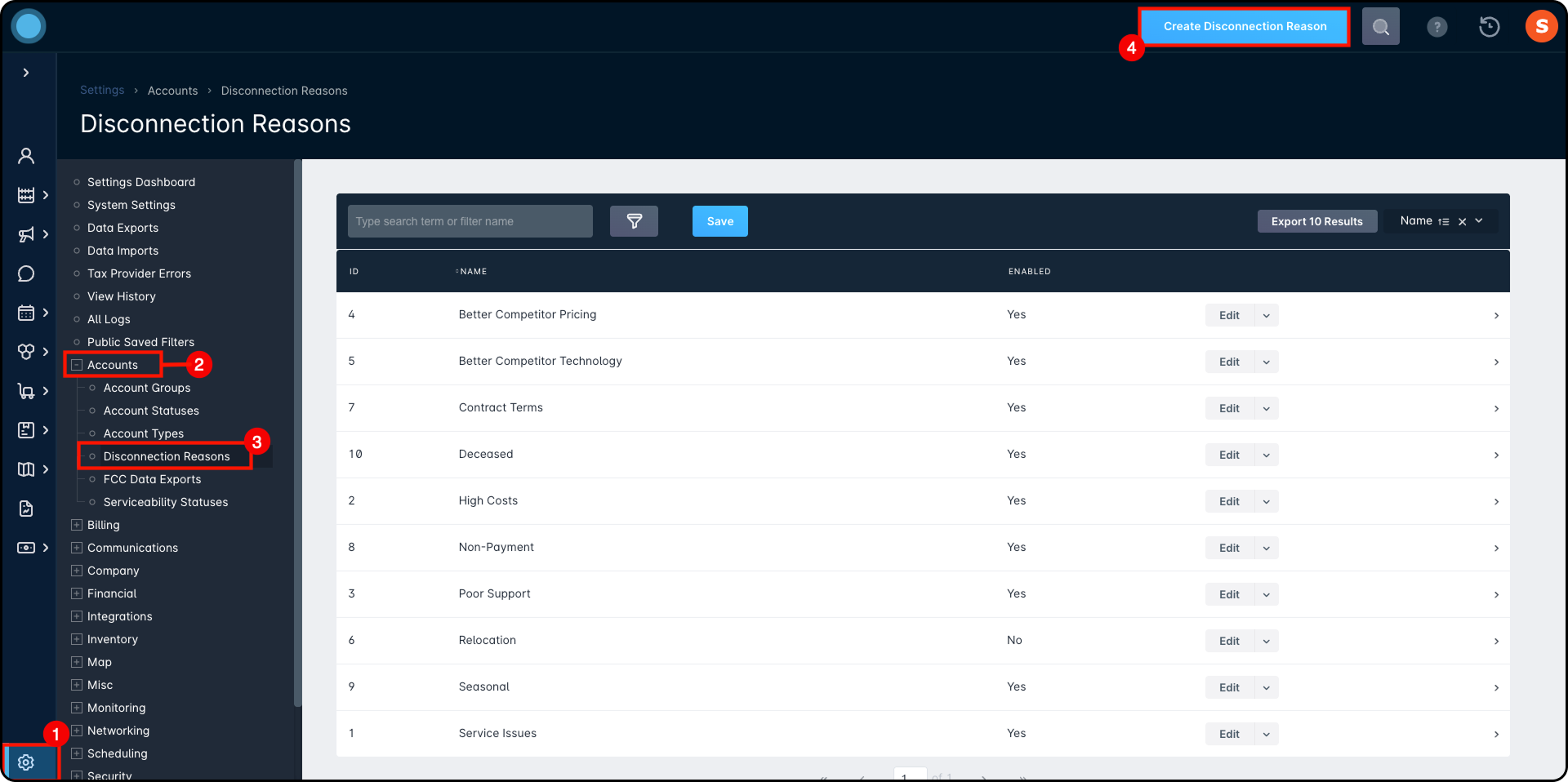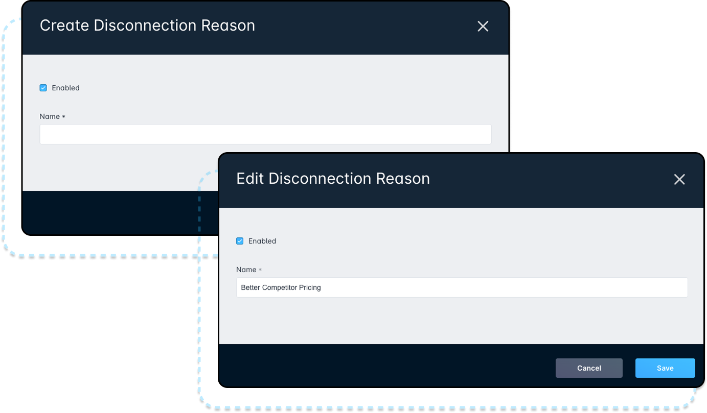 This feature enables you to capture and analyze the reasons subscribers disconnect their service. By incorporating disconnection reasons into workflows, Sonar helps support you with retention planning and churn analysis.