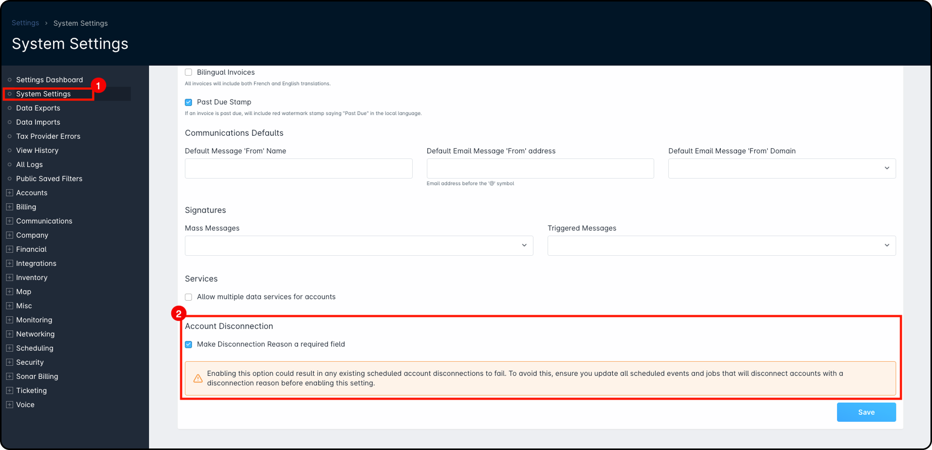 To integrate Disconnection Reasons into your workflows, navigate to Settings -> System Settings and locate the option at the bottom of the page to make the Disconnection Reason field mandatory.
