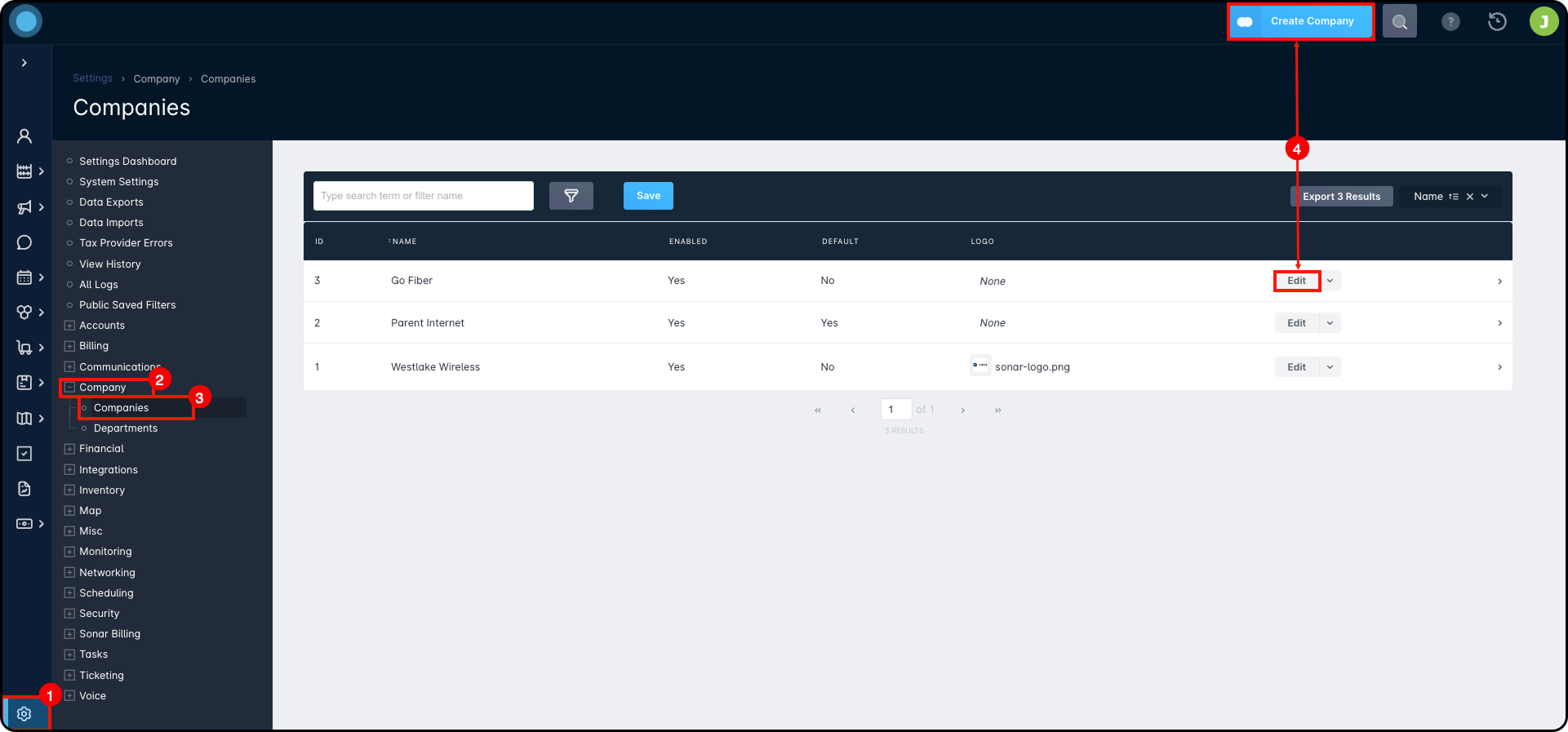 To set it up, go to Settings → Company → Companies, then create a new company or edit an existing one.