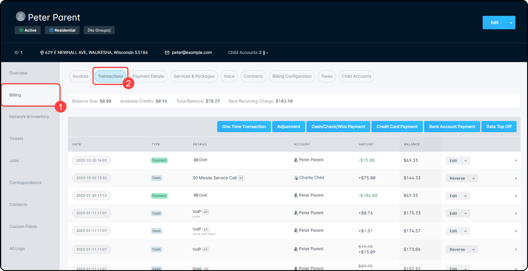 In this example, we'll be adding a service to an account and reviewing how the proration is calculated when creating a debit on the customer's account as a transaction.