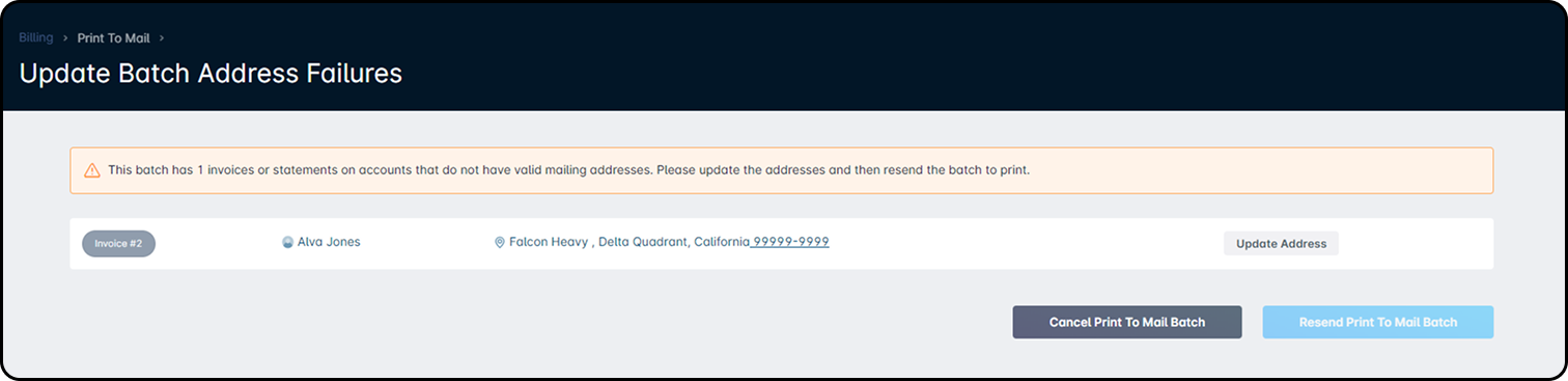 - Make any necessary adjustments in the next modal and once complete, click Resend Print to Mail Batch.