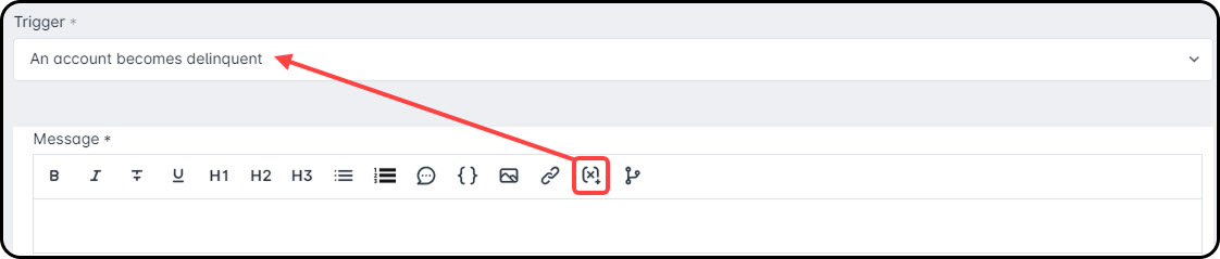 Once an email trigger is selected, the menu will appear and show the variables available to use in the email body.
