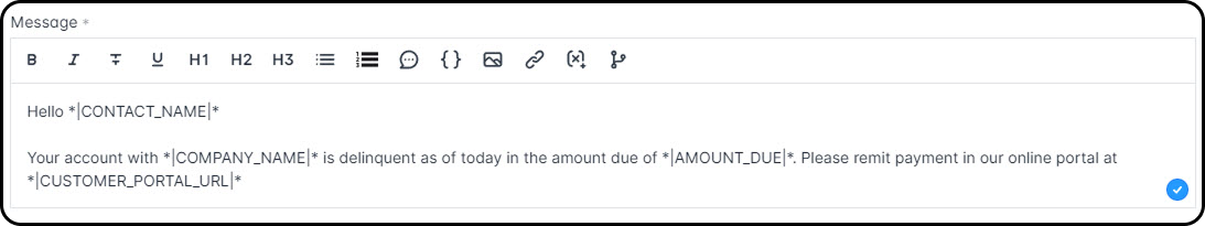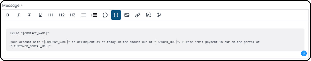 *|CUSTOM_MESSAGE|* | Custom message (for example, agreements, invoices) | |