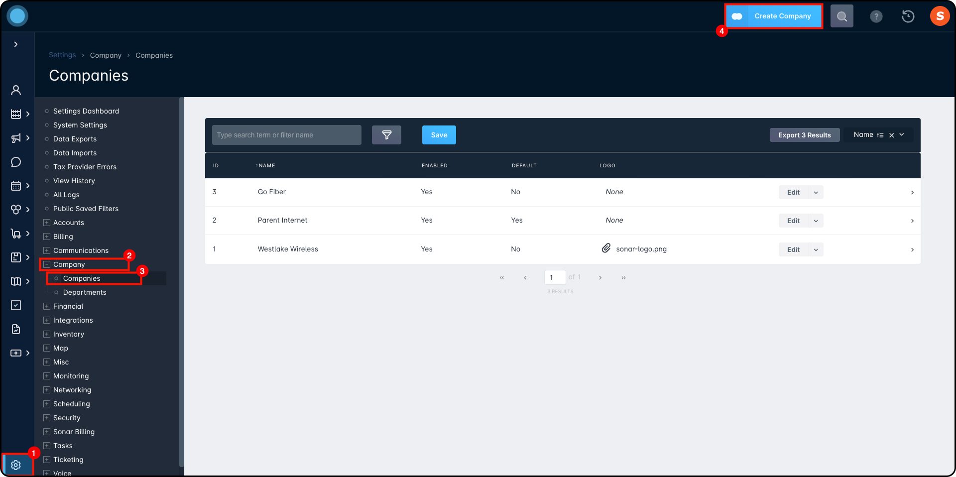 In Sonar, we give you the option of adding multiple companies into Sonar. These companies allow you to organize customers, contracts, and services in Sonar, all while allowing you to slowly onboard new company acquisitions and their customers.