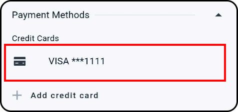 14. The credit card will now appear listed under Credit Cards within the account's Payment Methods section.