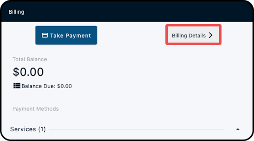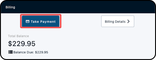 Note: You can also access this by navigating into the "Billing Details" screen and selecting the "Take Payment" button from there.
