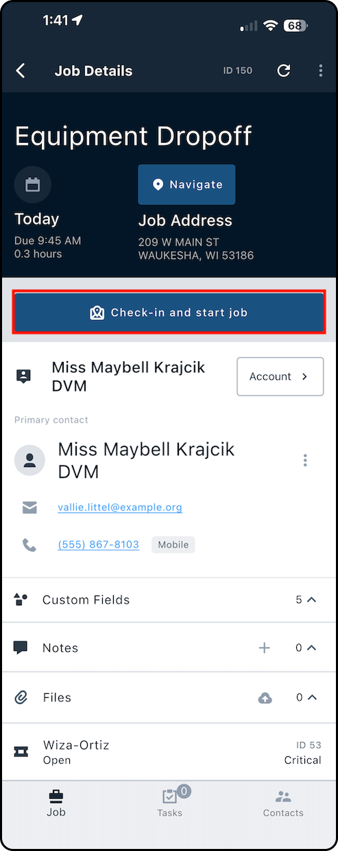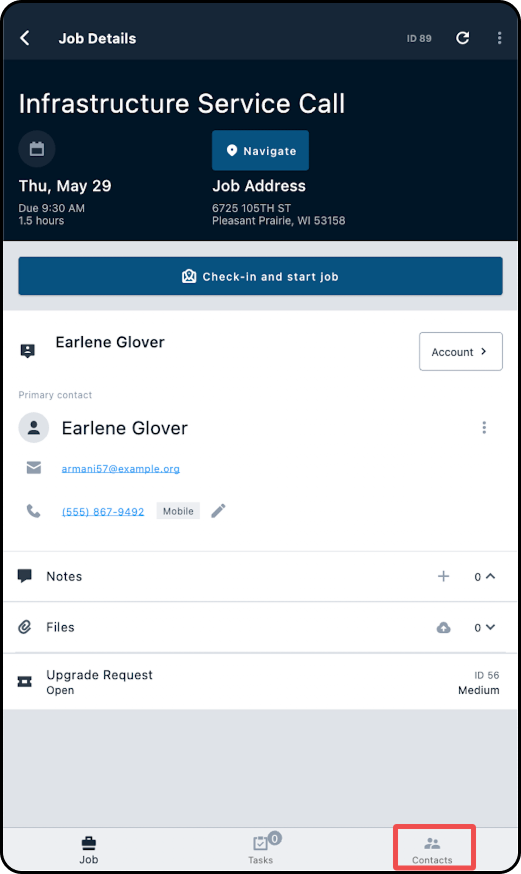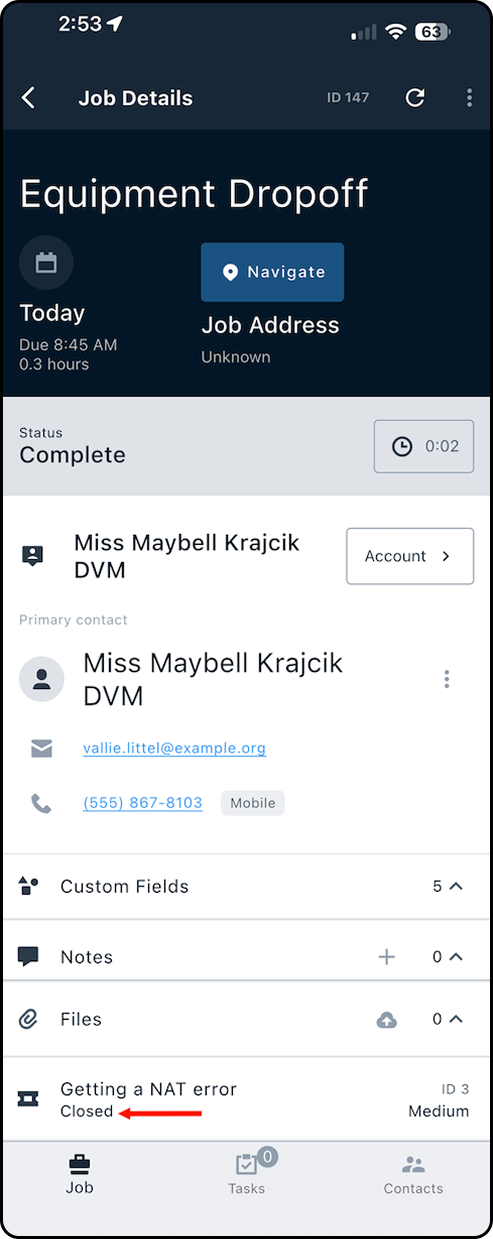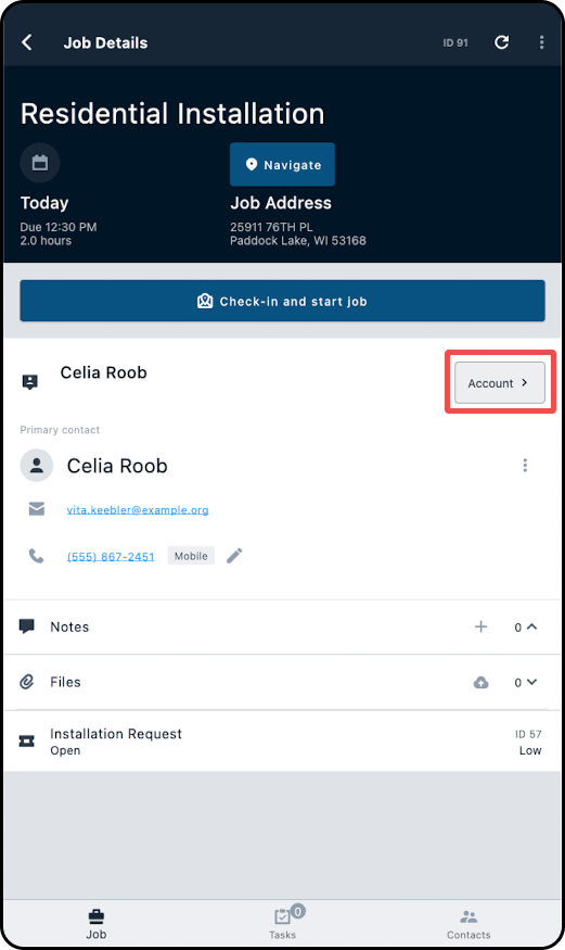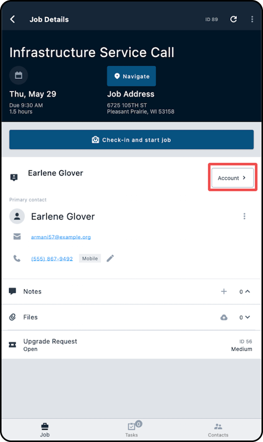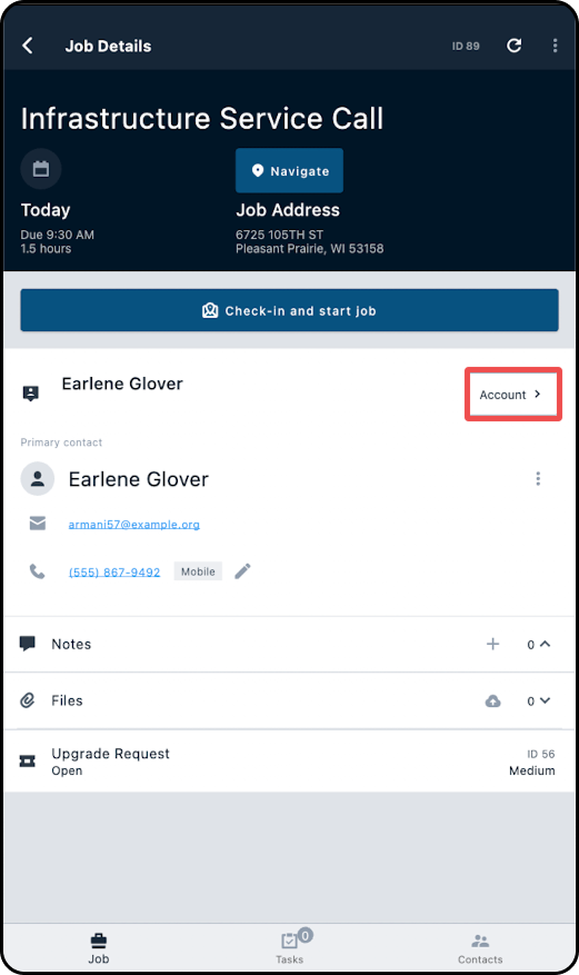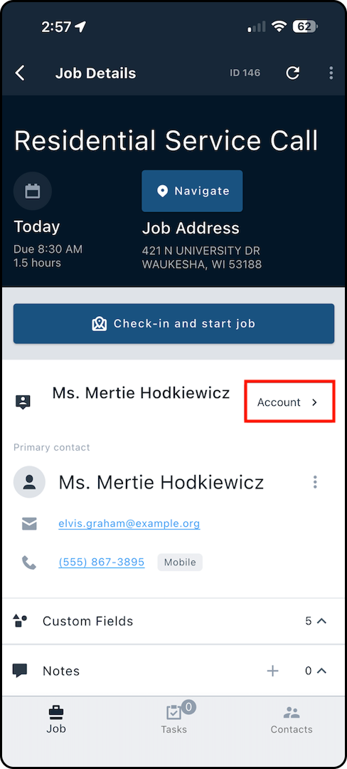 1. Starting from the Job Details page, tap through to the customer's account.