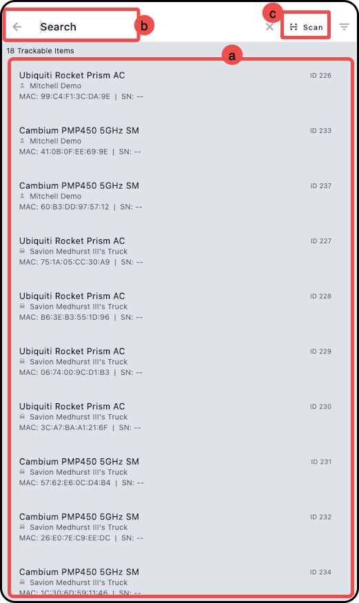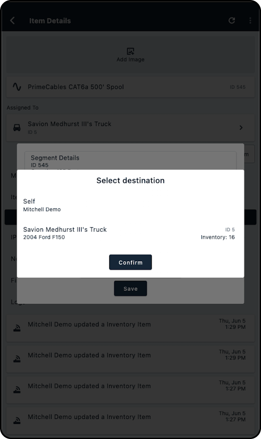 4. In the new modal, locate the inventory item you wish to assign and tap on it.