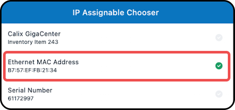 8. From the IP Assignable Chooser window, select the target for the IP address assignment; the selection made here will populate the Target section of the Assign IP window.