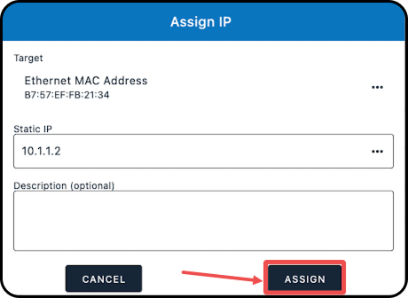 9. Back within the Assign IP window, use the "Static IP" field to specify the IP address; to enter in an IP address, you can either:
