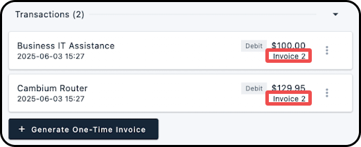 11. The invoice number will now appear for each debit that was invoiced, under the Billing History section of the account.