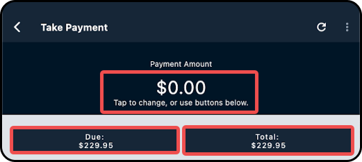5. At the top of the Take Payment screen is where you can determine the amount of the payment, out of 3 options: