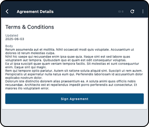 3. Scroll through the Account View until you see the Agreements section and select the agreement to be signed