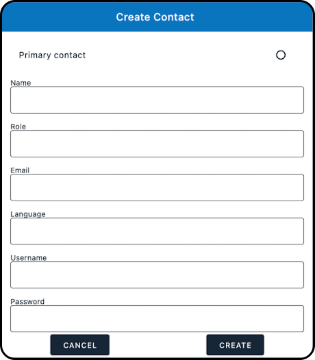 a) Clicking on the "Add" button will cause the "Create Contact" modal to open, where you can fill in the information for the new contact: