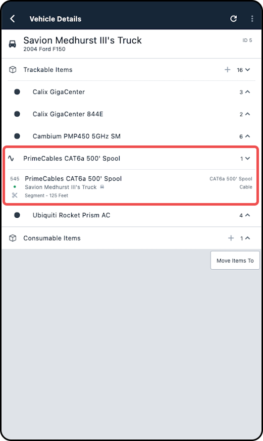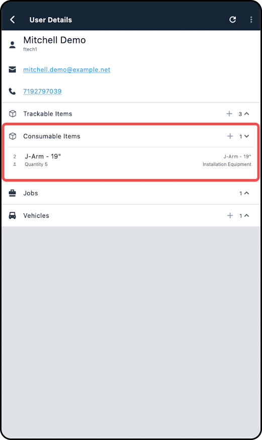 2. Expand the items below Consumable Inventory Items and tap on the applicable inventory item.