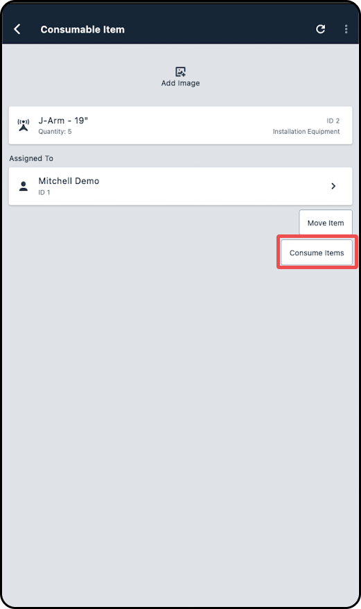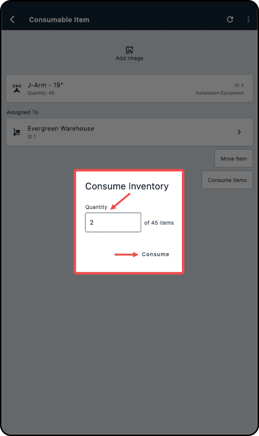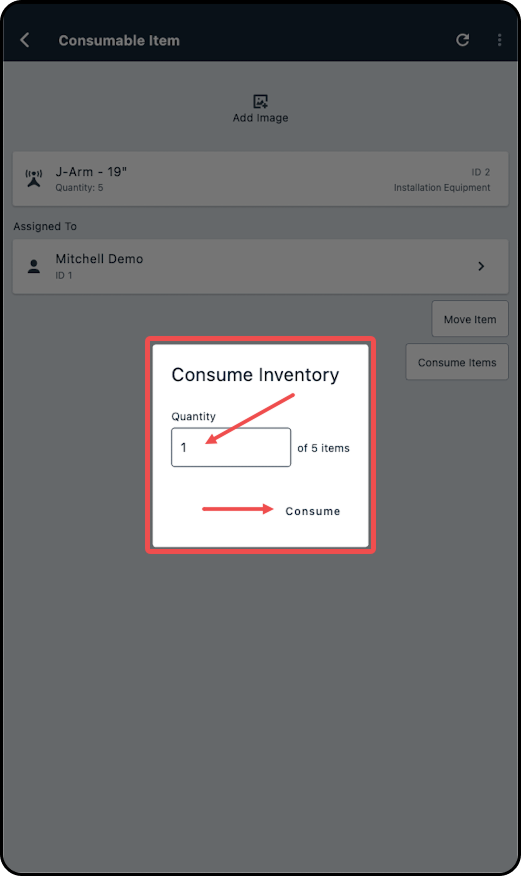 6. In the new modal enter the quantity and tap on Consume.