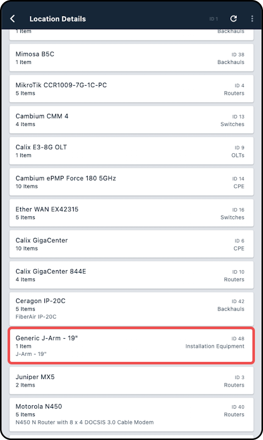 Note: All IPs assigned to the inventory item will be removed once the equipment has been moved