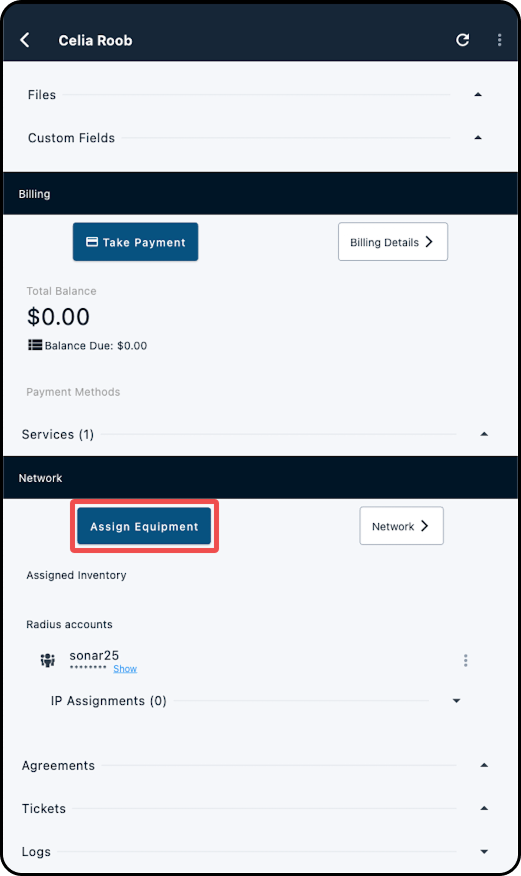 4. Scroll to the Network section and tap "Assign Equipment".