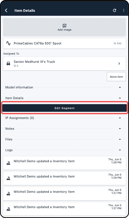 2. On the Item Details page, tap on "Edit Segment"