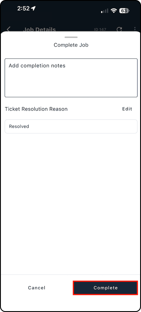 6. Enter any Completion Notes, then tap Complete to finish.