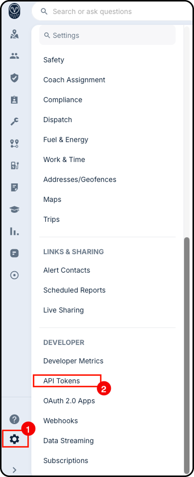 3. In the left navigation, under Developer, select API Tokens.