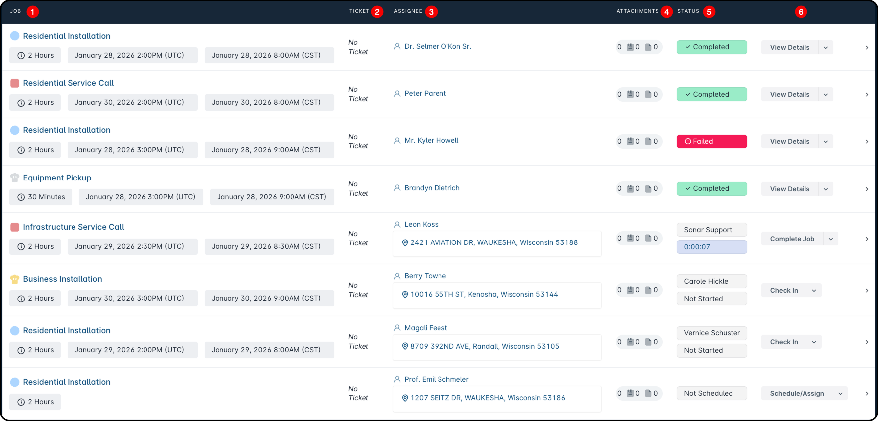 - Job Type & Duration: Includes estimated time and scheduled date/time.