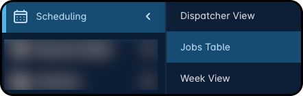 - Navigation to other Scheduling Views: Use the main menu to switch between scheduling views—Dispatcher View, Jobs Table, or Week View.