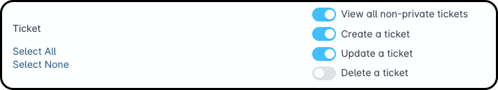 1. View all non-private tickets: Allows you to view all non-private tickets.