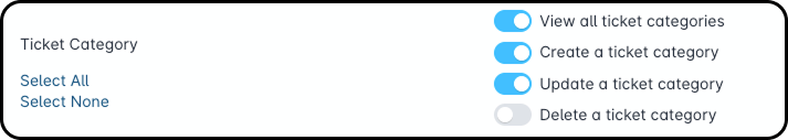 1. View all ticket categories: Allows you to view all ticket categories and ticket category families.